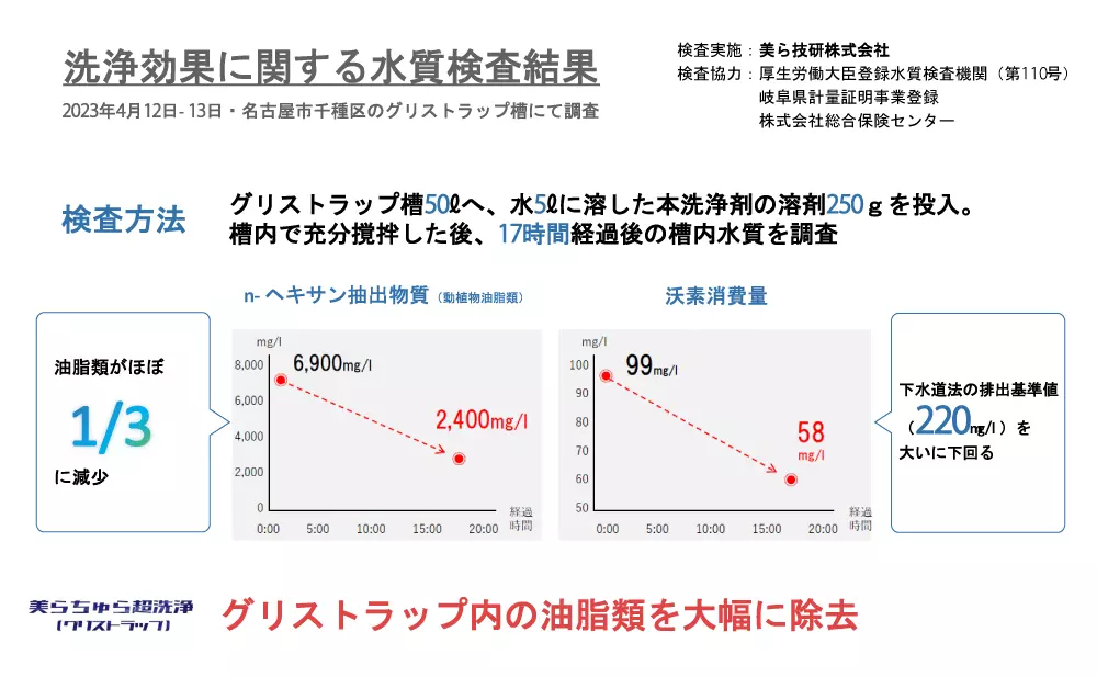 酸素成分などで臭い物質も分解します。分解された油は、無害な状態となるので悪臭発生が抑制できます。酸素系洗剤は一般的に即効性が低いですが、【独自技術パウダー】で圧倒的な効果と即効性が特徴です。